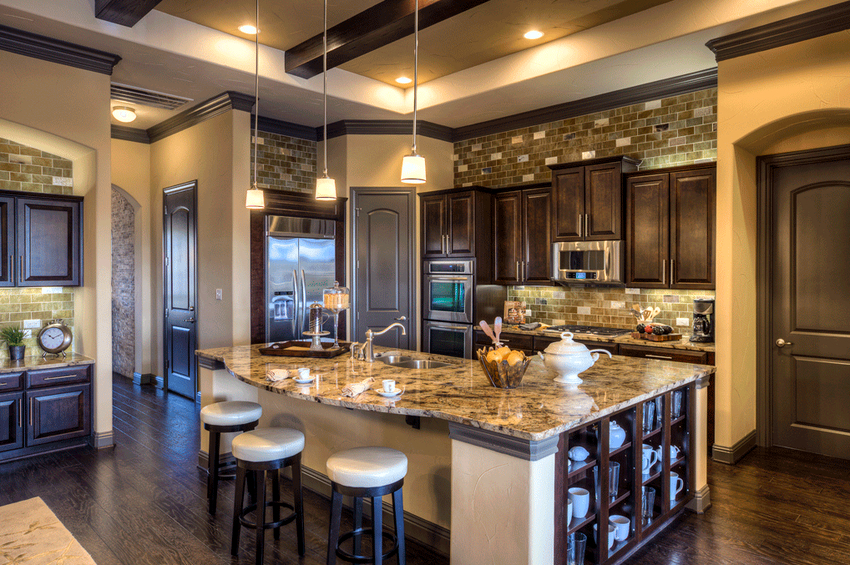 The first option reduces performance, quickly gets tired and causes apathy. A moderate warm yellow color is a natural tone that creates a calm, welcoming environment. This kitchen lighting option can be used in the dining area for daily family meals and for the work surface.