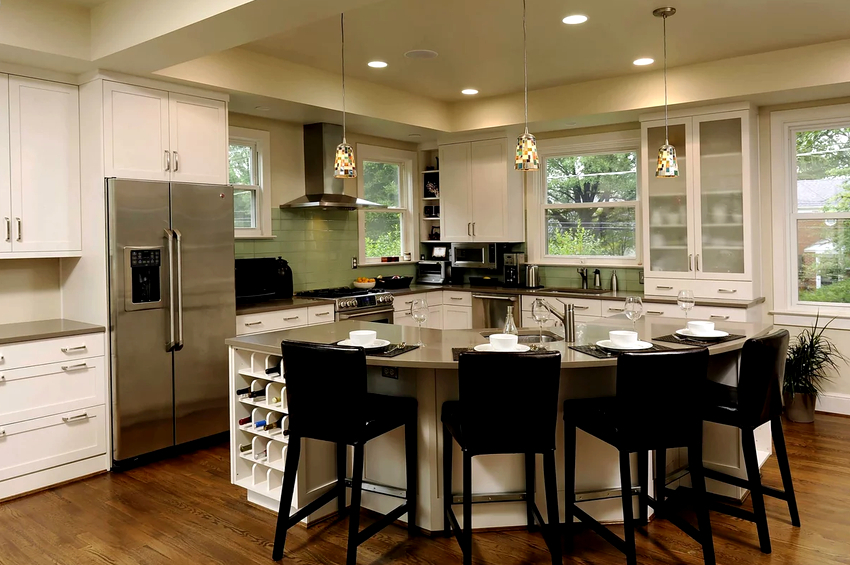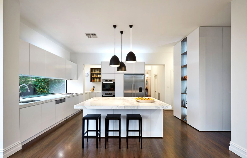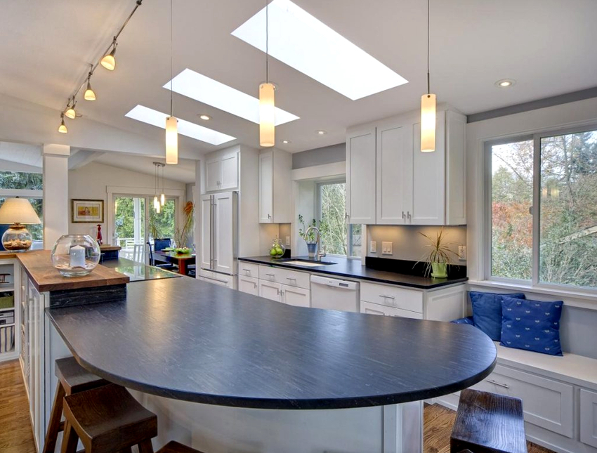 With the help of a certain kitchen lighting option, you can visually adjust the shape and size of the room