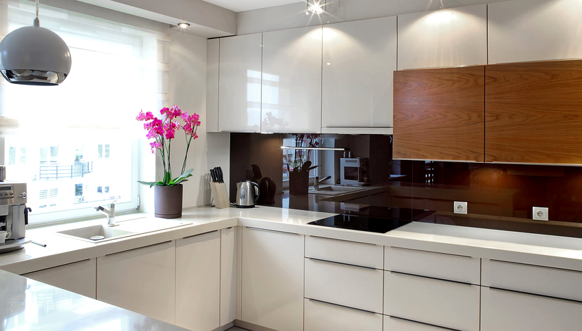 Useful advice! A glass apron with built-in LED illumination looks original and stylish in the kitchen interior, at the same time providing illumination of the working area and playing the role of a decorative element of the interior.
