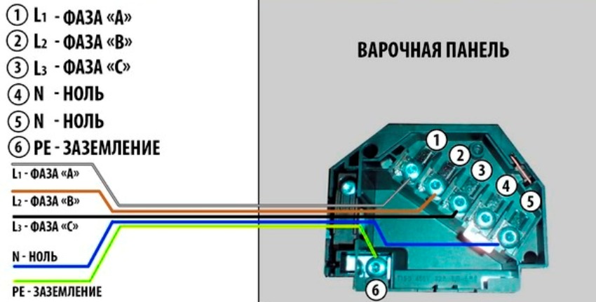 Each surface for cooking has a drawing on its body, which indicates its connection diagram. Guided by it, you can avoid installation errors. Another important point is that the wires must be well fixed in the terminals.