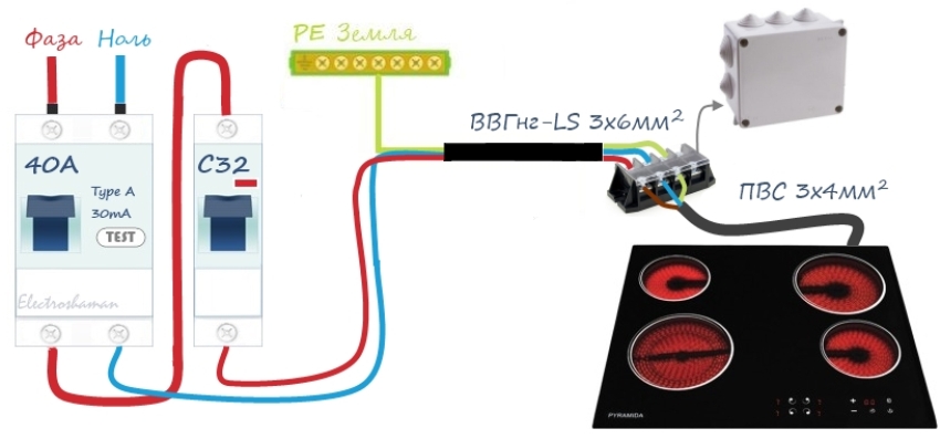 It should be noted that when using a separate line to connect the hob, the installation of a circuit breaker (RCD) is required. For these purposes, 32 or 40 A devices are best suited.
