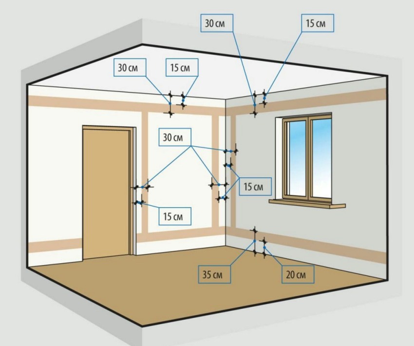 To arrange a recess for an outlet, you will need a drill and a special nozzle - a crown. Pre-markings are applied to the wall. The minimum distance from the ceiling is 15 cm. Gas equipment should not be located near the wires. The minimum allowable distance is 50 cm.