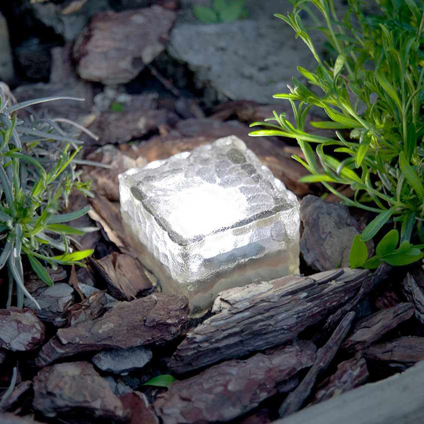 - lamps for the decoration of flower beds, made of transparent material, which ensures their invisibility during the daytime;