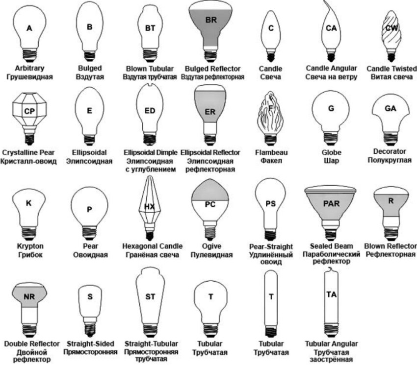 The most popular are the e27 and e14 dimmable LED lamp bases. The letter "e" in the title indicates that the design of the part is represented by a standard threaded connection. The numerical values correspond to the diameter of the base in millimeters.