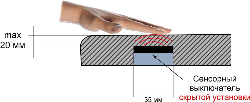 Touch switches are usually located directly next to the tape itself, since they look like a module and do not spoil the appearance of the kitchen. But at the same time it is very important to remember that the sensor reacts to any contact, therefore the location should exclude accidental touches to which the sensor can react.