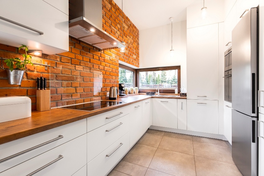 Proper lighting of the room and LED lighting for the kitchen under the cabinets create a comfortable environment for cooking