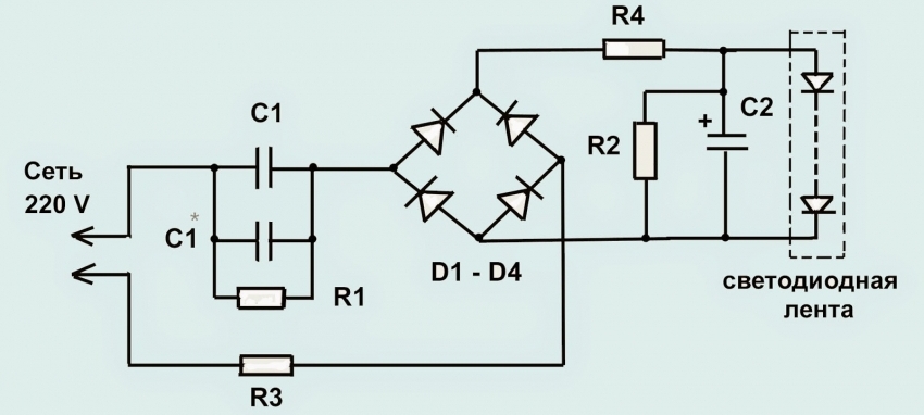 The operation of ceiling chandeliers is based on a conventional converter. At the output, this element produces a voltage of about 5 volts. The converter can be of different design, which uses a capacitor and a diode, or works in accordance with a bridge circuit.