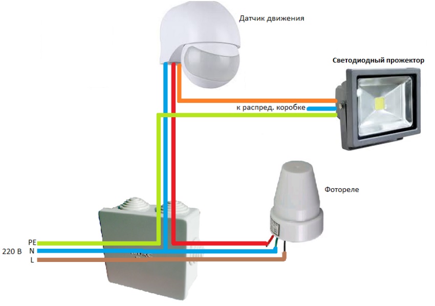 How to connect a motion sensor to a floodlight if it is not part of the main structure? In this case, proceed according to the following connection diagram: