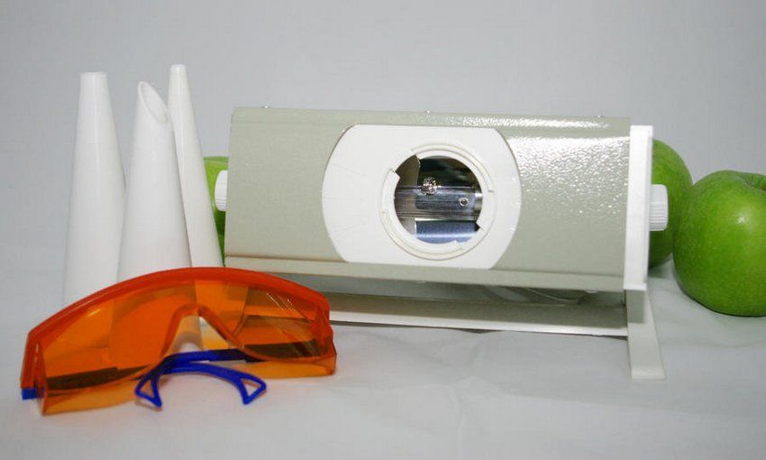 The strongest radiation is possessed by a device equipped with a quartz bulb. This irradiator produces ozone, which has antimicrobial effects.