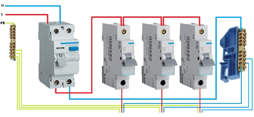 - do not allow the connection of the neutral wires of the sockets, which are under the control of the RCD, with the ground wire (terminal). In this case, even an outlet that is not connected to the consumer will create a differential current;