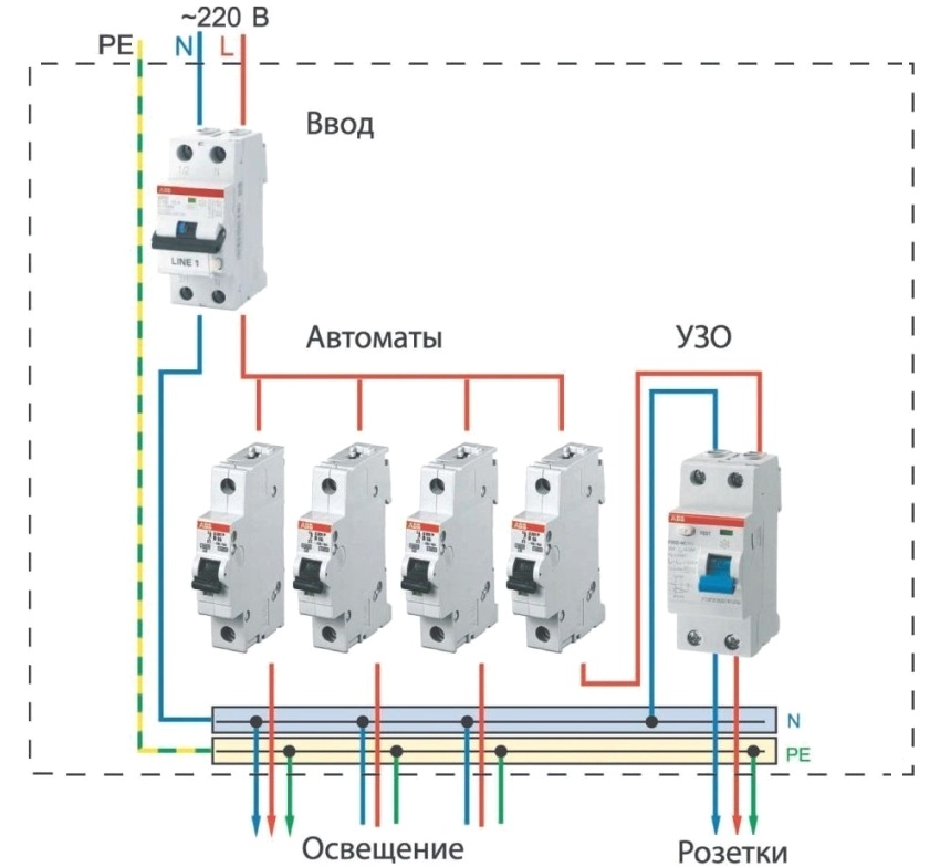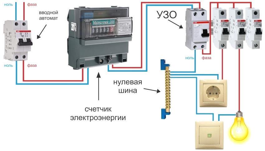 Connection diagram of RCDs and machines using the example of an apartment electricity meter