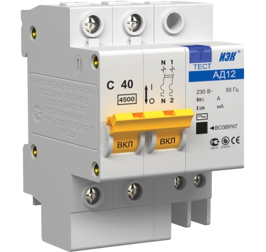 However, the RCD does not react to short-circuit phenomena in the wiring circuit and to excess power in the current circuit. In this regard, the device must be installed in tandem with an automatic switch ("automatic"), which reacts to short circuit and power overload.