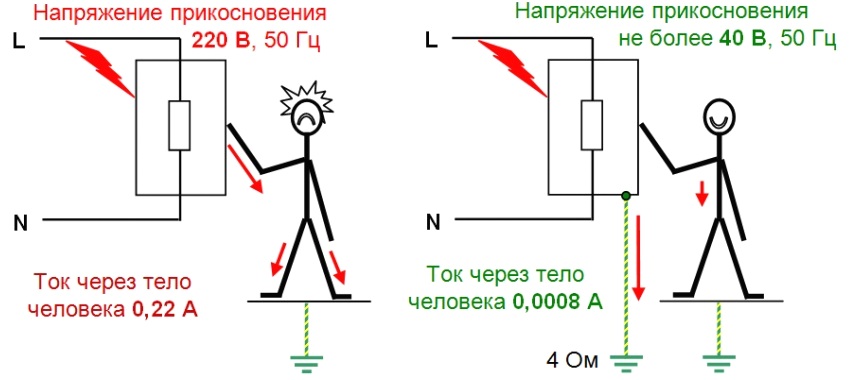 Note! In AC networks with grounded neutral and voltage up to 1 kV (this is the format of residential power supply), grounding as the main protection against electric shock with indirect contact is not used, since it is not effective.