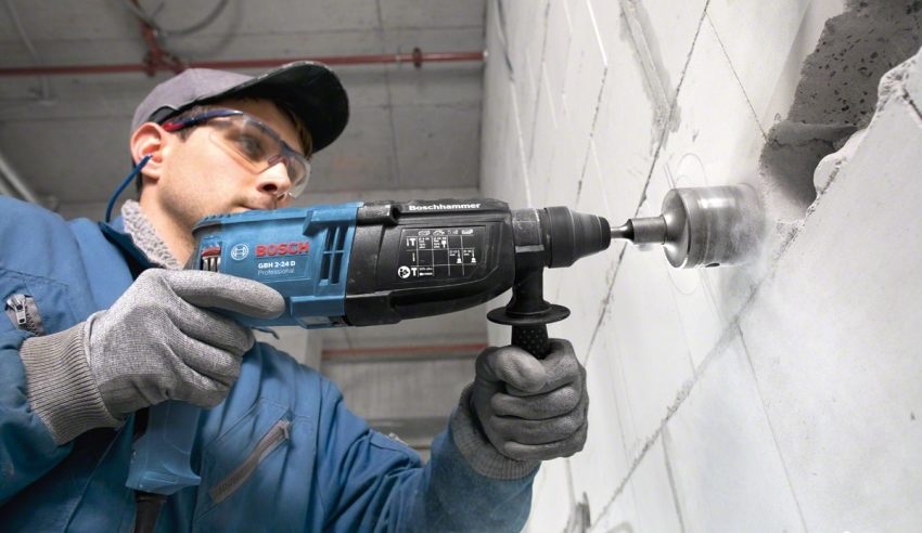 First of all, you need to prepare a puncher. This device is needed to dismantle old wiring and organize new channels (if necessary). To work, you will need to purchase several attachments per hammer drill: drill for chipping concrete walls with a cross-section of 16-20 mm, a crown-shaped drill 90-100 mm and a chisel 25-30 mm.