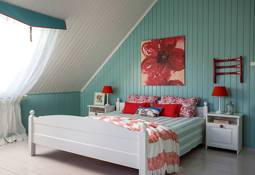 Using various options for placing planks, you can visually increase the height of the room (vertical fastening), visually expand the boundaries (horizontal fastening), make a large rectangular ceiling in a living room interesting using fragmentary installation. You can “play” with the structure of the plank when decorating the ceiling in a room with complex architecture, for example, if there are niches, ledges, etc. Sometimes, to create a certain interior composition, painted plank is used.