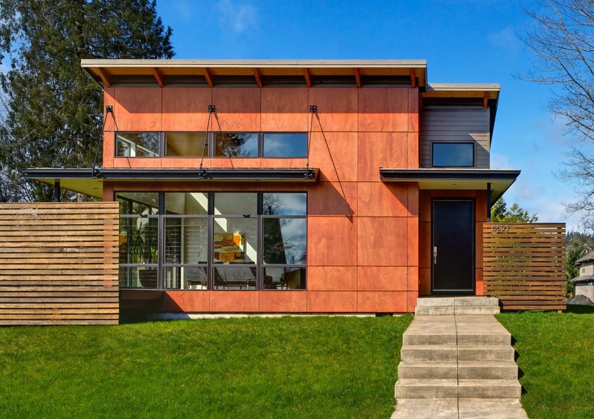 - 8 Exterior decoration of the house with fiber cement facade panels, metal and cement siding