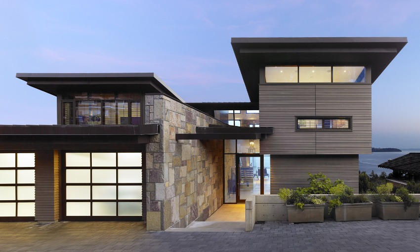 The material with which the design of the facade of the house is carried out should not show a tendency to weathering or washout