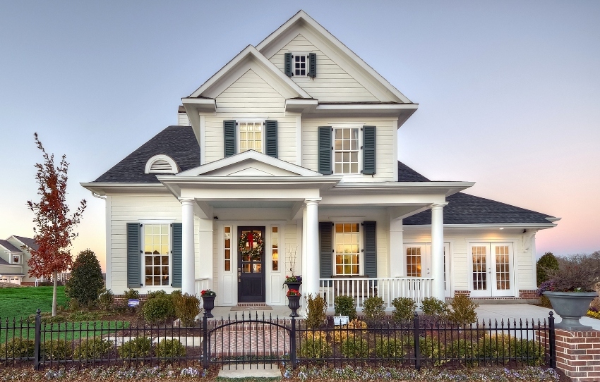 Due to the fact that the style provides for the application of high-quality and natural materials, the design of the facade will not be cheap, but the classics are unlikely to ever go out of fashion and will impress the guests of the house for a long time.