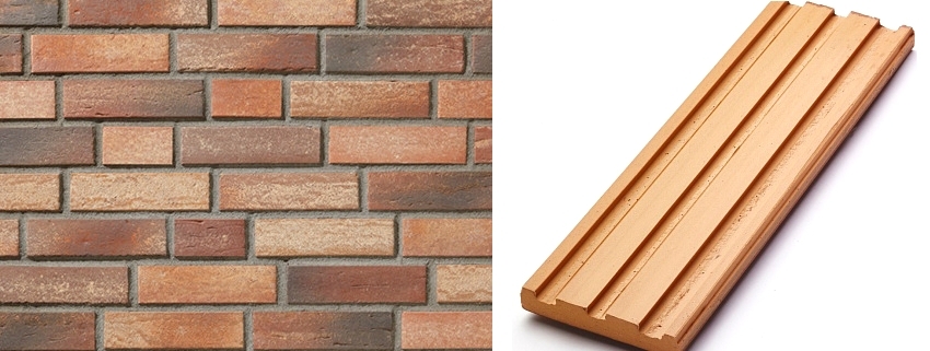 This facing material is a two-layer element, which consists of a layer of heat insulator and clinker tiles. Polyurethane foam, expanded polystyrene or mineral wool can act as a heat insulator. The thickness of the insulating layer is 30-100 mm.