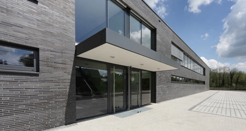 Beautiful decoration of the facade of the building using clinker tiles from the Polish company Cerrad