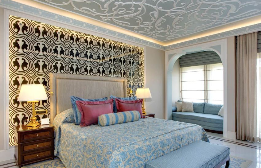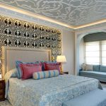 To enhance the effect of an oriental interior, you need to use a rich color scheme. The most popular colors are sumptuous shades of gold and deep blue azure. Clarity of lines and small details are welcomed in the design. Red, black, crimson and emerald backgrounds are suitable for contrast.