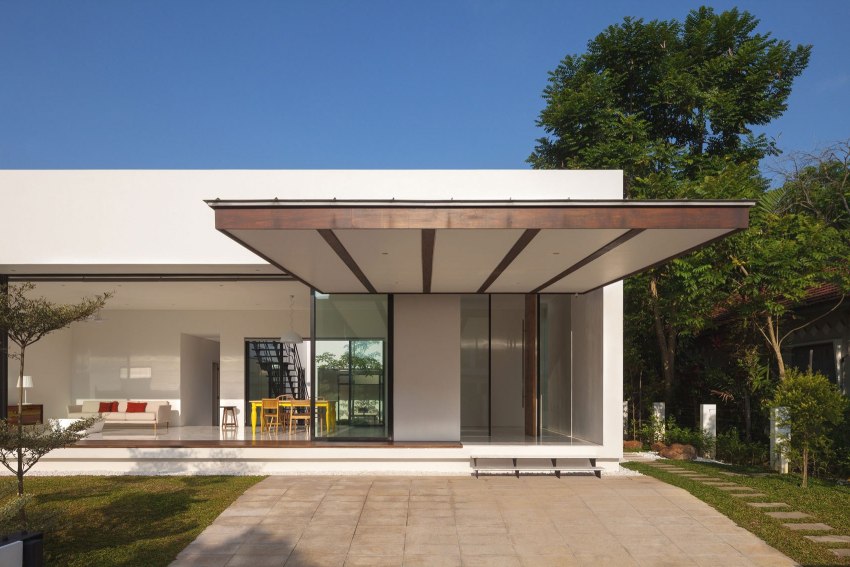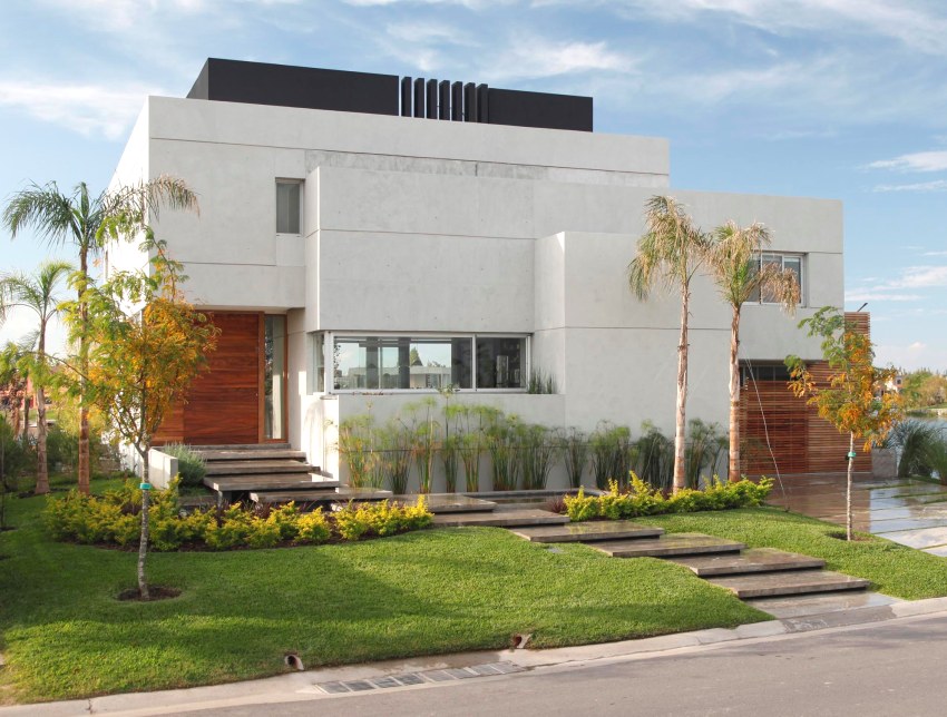 Interior design must obey a single rule - symmetry. Most often, in the photo, the design of one-story houses from the outside looks conservative and even gloomy. In rare cases, buildings can be two-story. Moreover, the beautiful stairs leading to the second floor from the living rooms serve as an element dividing the space.