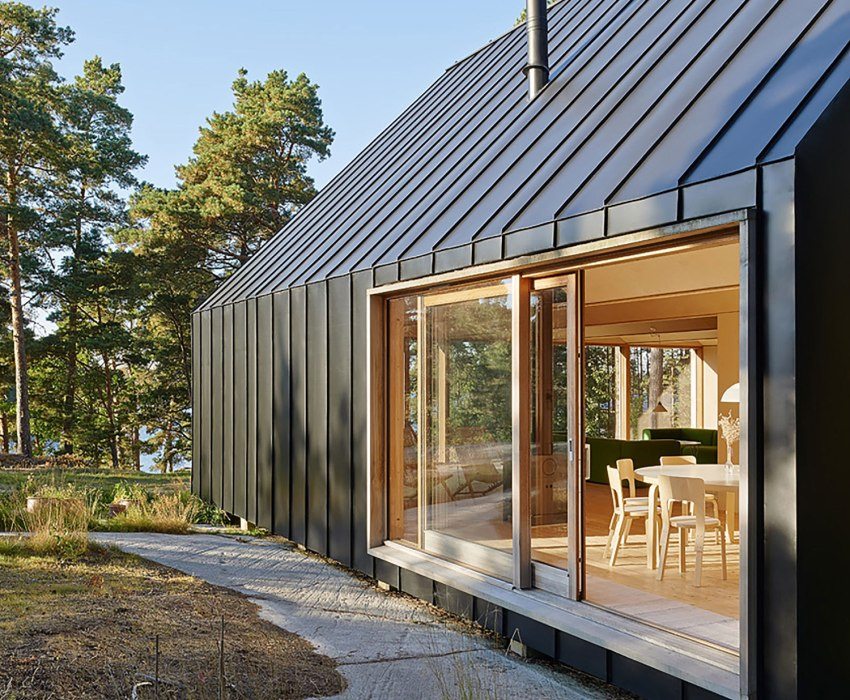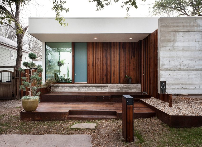 The use of natural wood covered facade paint in the decoration of the external walls of the house