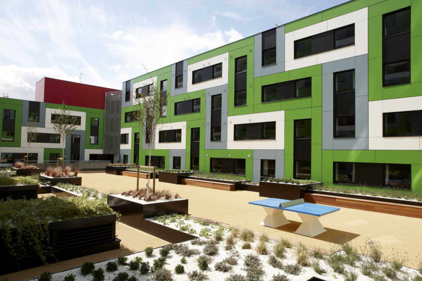 НPL-panels are distinguished by high sound and heat insulation characteristics, a large variety of colors. The material has self-cleaning properties, so it can be safely used for finishing multi-storey buildings. Panels for the facade of the house have increased strength, resistance to mechanical stress, moisture resistance, resistance to aggressive environments. Due to the high density of the material, dust and dirt do not get into the structure of the product, excluding the possibility of the formation of microorganisms.