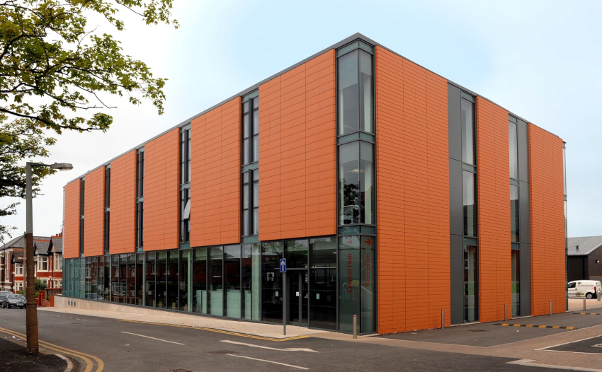 HPL panels, natural stone, metal cassettes, glass panels, clinker bricks can be used as decorative cladding.