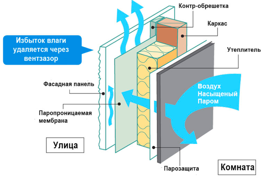 The first step is to figure out what a ventilated facade is. It is represented by a multi-layer structure, which is attached to the outer part of the building wall using profiles and bolts. An air space is provided between the surface of the structure and the layer of finishing materials in order to ensure air exchange to protect the wall from moisture accumulation and reduce the heat transfer of the house.