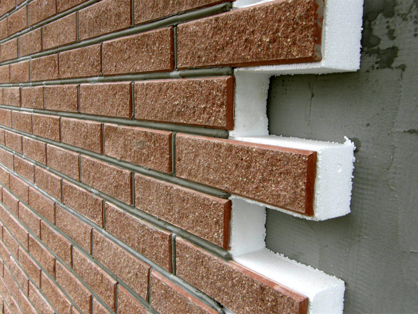 The foam block is produced in the form of facing slabs, which are laid according to the brickwork principle in order to exclude the appearance of cold bridges. The foam block is glued directly to the bearing wall, and the adhesive mixture acts as an additional waterproofing layer.
