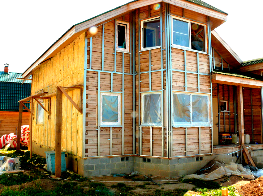 - Ventilated. In this case, it is additionally required to make an interlayer, placing it between the external facing material and the insulation layer. For this, a metal or wooden crate is mounted. Insulation of the facade with siding is carried out only after the installation of the battens.