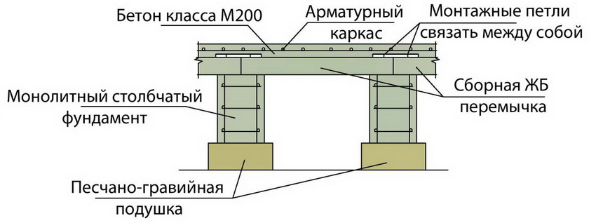Note! In this case, piles or pillars are not strong enough. In order to increase their rigidity, they are strapped (connected to each other).
