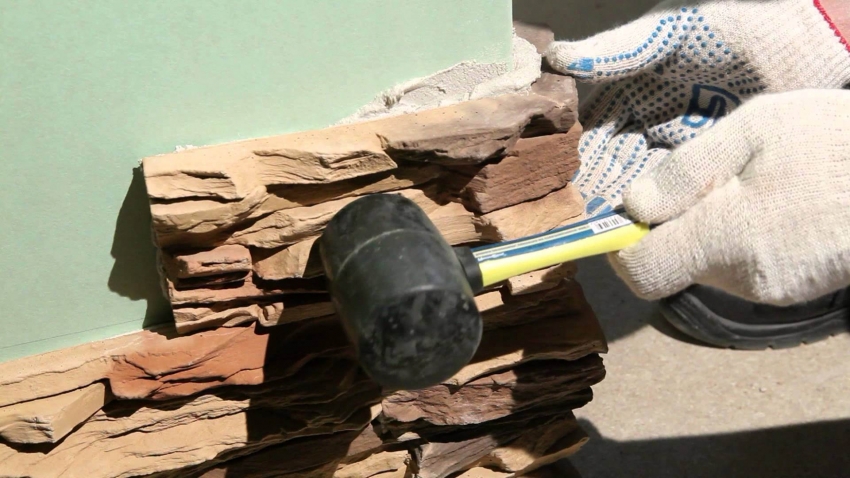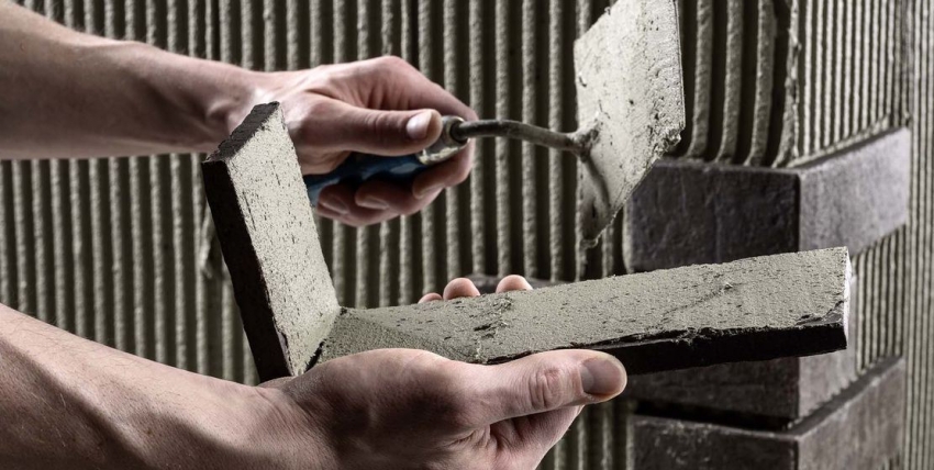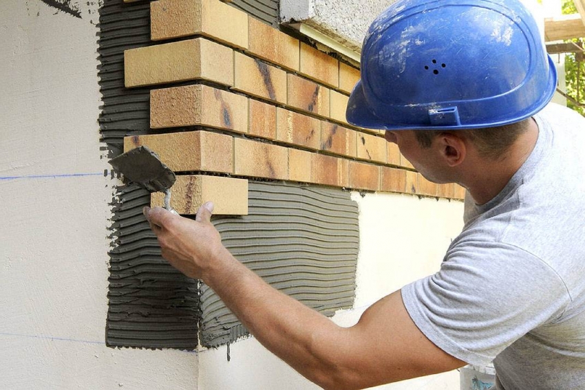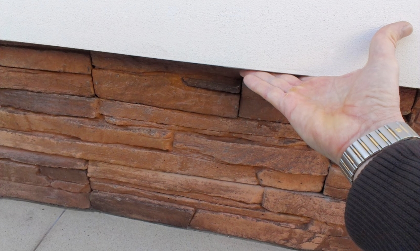 An adhesive mixture is applied to the back of each element.The low tide should be fixed strictly along the previously outlined line. After waiting some time for the mortar to set, putty or silicone sealant is applied to the joints between the casting elements. After the adhesive has completely set, the walls of the building can be clad.