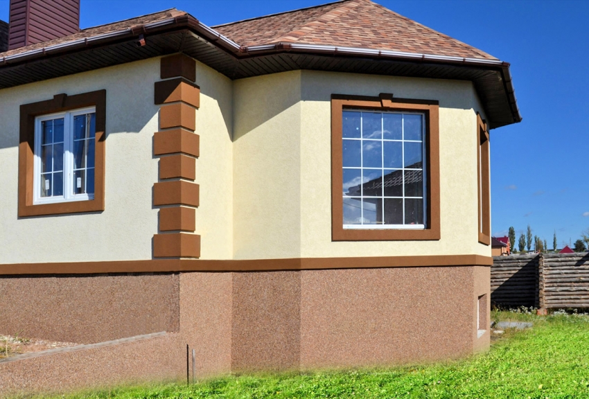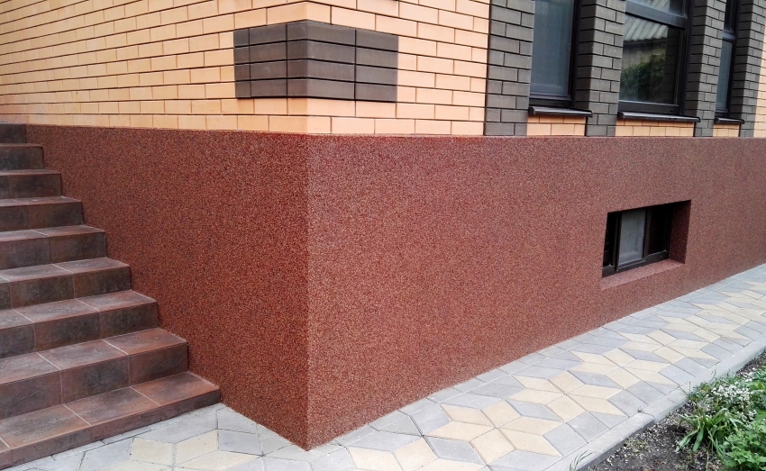 Decorative textured plaster for facing the basement, you can paint or purchase a composition already with the required shade