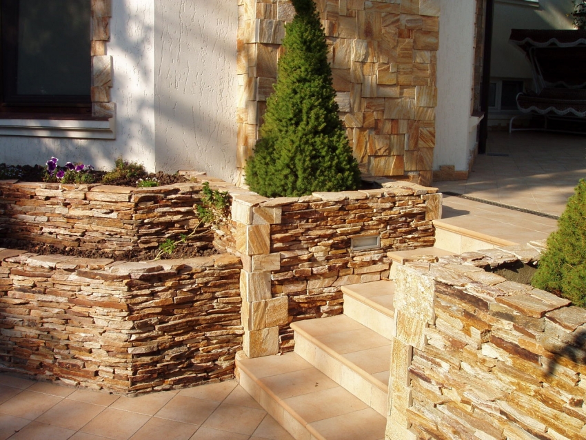 Finishing with artificial or natural stone is possible only in the case of a reinforced base / plinth surface and the presence of gutters