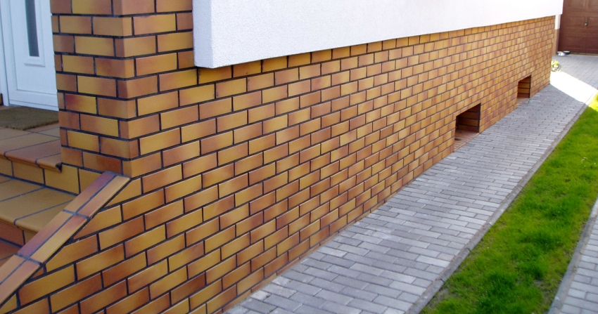 Clinker tiles for the basement perform two functions at once: protective, protecting the insulation and the outer wall of the foundation from atmospheric precipitation and mechanical influences, and decorative, giving the building an aesthetic and noble look.