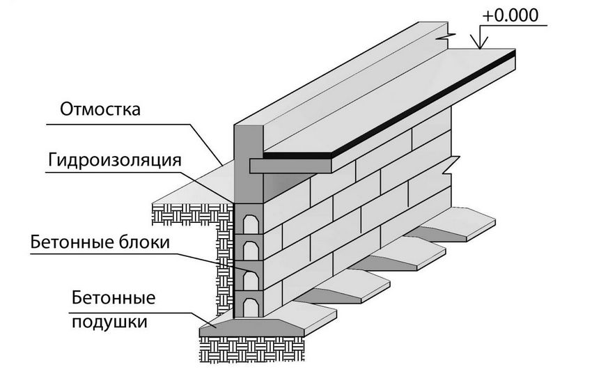 The foundation structure in this case consists of columnar bases, which are dug into the ground, and beams connecting them into a single frame. Poles can be made of different materials: reinforced concrete, concrete, rubble concrete, blocks, bricks, natural stone, pipes (asbestos or plastic) and even wood. The depth of the pillars in the general case depends on the type of soil and the level of groundwater, and their material, number and section - on the total weight of the structure.