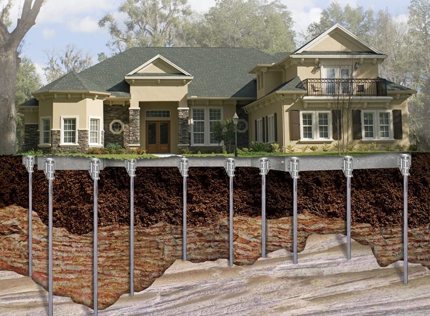 Pile foundation differs from columnar in that the pillars are driven in or screwed in like a drill.In this case, the soil under the post turns into a tightly rammed pillow, which significantly adds to the reliability of the structure. Reinforced concrete beams and even slabs can be laid on the hammered posts. The difficulty is that you need a pile driver to drive in the posts, but each of them will withstand a load of 5 tons, that is, the house can be quite large.