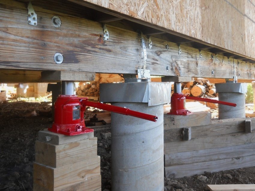 But in order to raise the blockhouse, you need at least two jacks with a carrying capacity of 5 tons (it is optimal to use 4 jacks for a small house with an area of 6x6 m). It is best to use specialized hydraulic equipment. It is more expensive, but much faster.