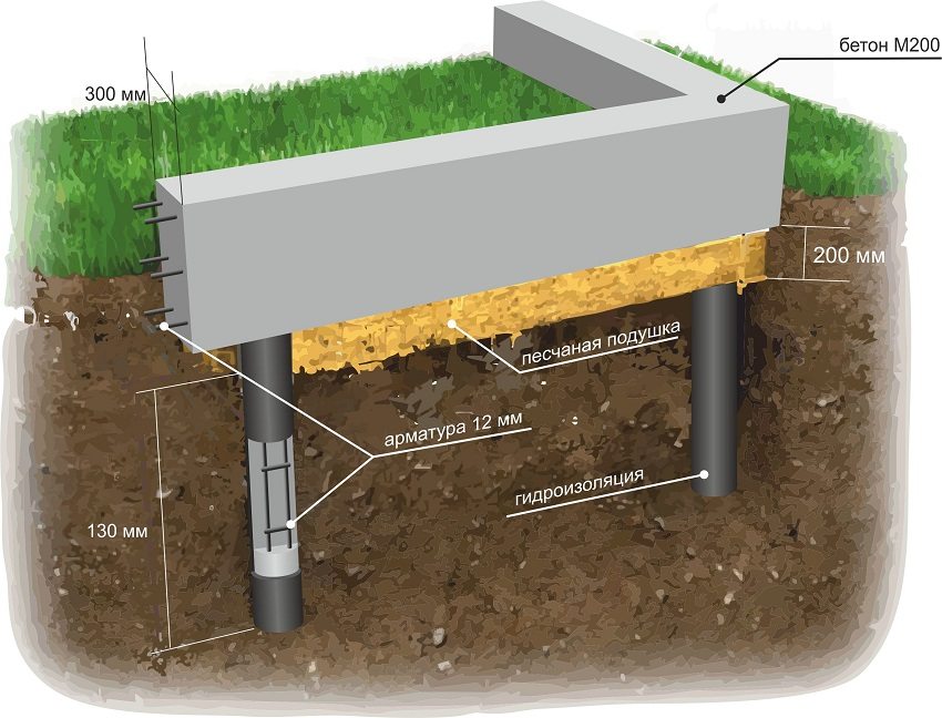 The supporting function is performed by pillars of a round or rectangular shape. The posts are immersed to a specially calculated depth. It is on them that the entire weight component of the building is held. The grillage is a monolith that unites all installed piles.