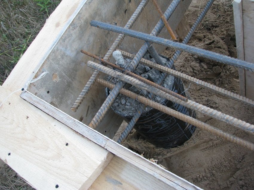 - a reinforcement cage is mounted inside the formwork. It is necessary that it be completely submerged in the concrete solution. To do this, small bars should be placed under the lowest rods;