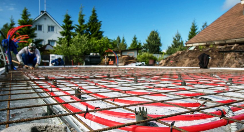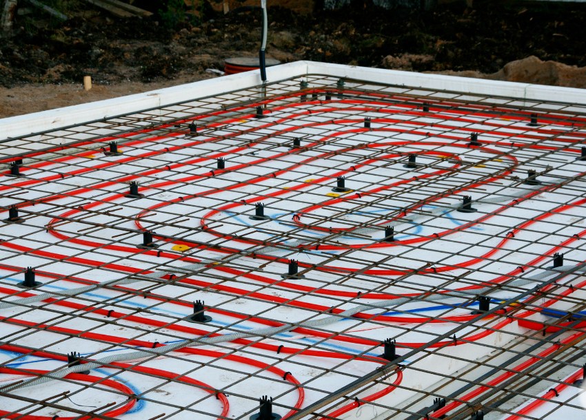 Since the warm floor is poured into concrete, the monolithic slab serves as an excellent heat accumulator