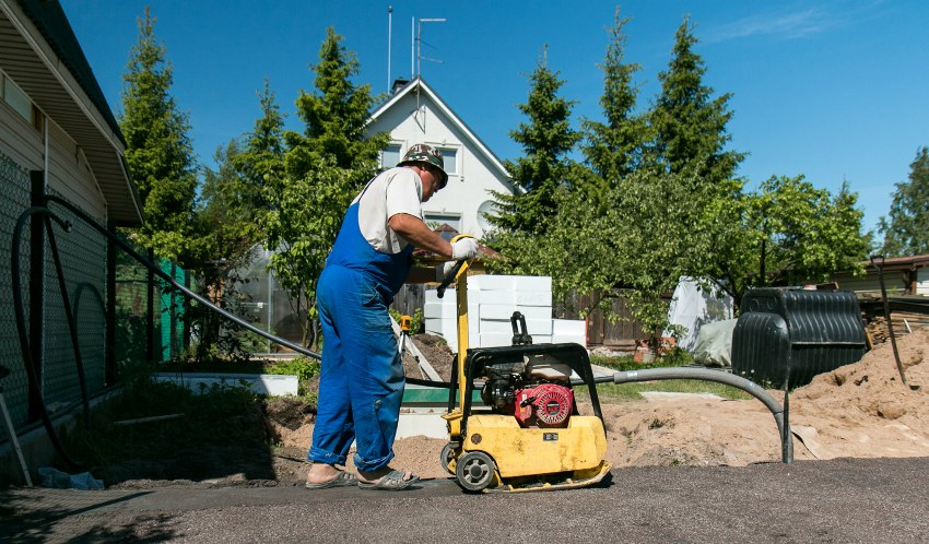 Before pouring concrete, it is necessary to prepare a flat area and properly tamp it with a special machine
