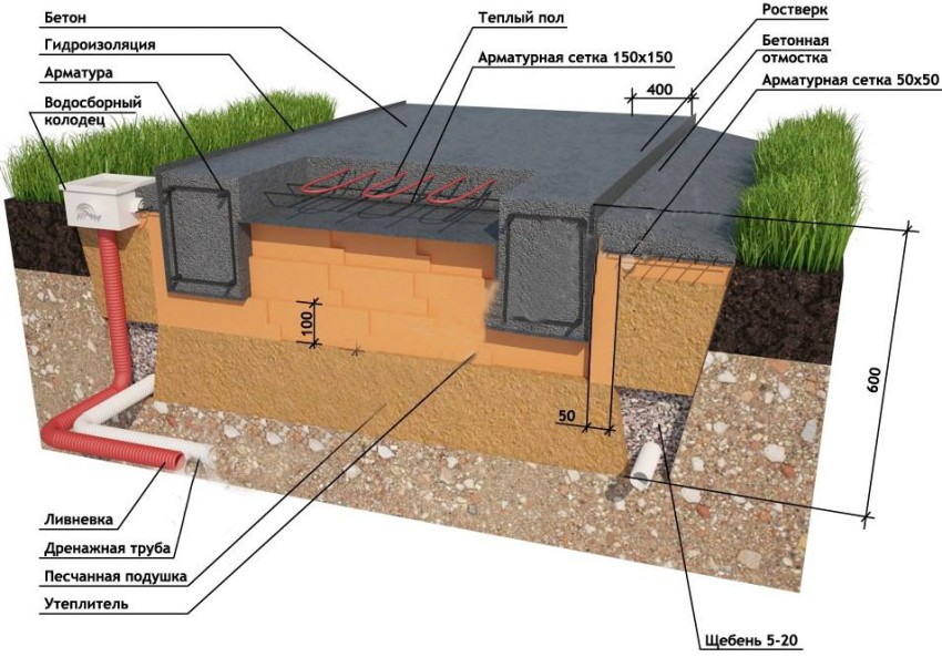 In order for the slab to always remain dry, it is important to properly organize the drainage system of the foundation.