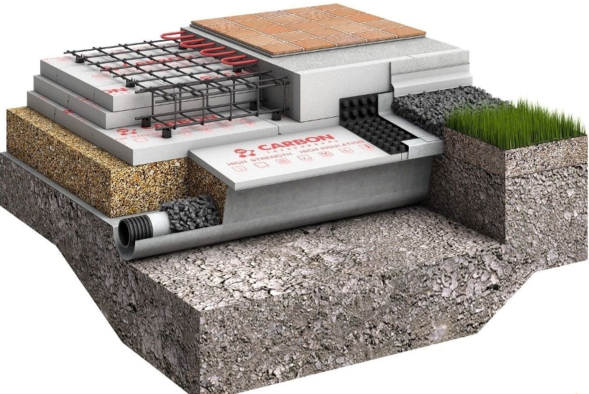 Insulation of the foundation is an important measure, due to which heat does not escape from the building into the ground, and cold does not penetrate from the soil into the room.The insulation must be of high strength. Therefore, in the USP technology, it is recommended to use plates made of extruded polystyrene foam, which (due to the presence of graphite in their composition) are characterized by increased compressive strength.