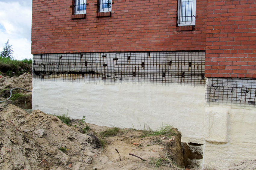 This technology can be used with a ready-made foundation, so it can be carried out both during the construction phase and during repairs. If you carry out work after the construction of the building, then you will need to dig out and completely clean the base. After that, it is imperative to create a reliable waterproofing using a bituminous primer, on which strips of overlapping roll materials are then mounted from bottom to top.