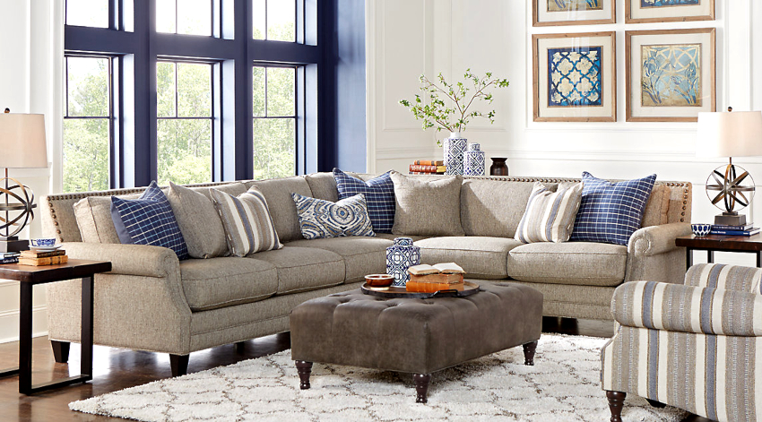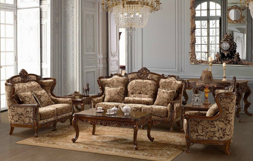 In a classic living room, a luxurious sofa and a coffee table with curved legs will look appropriate