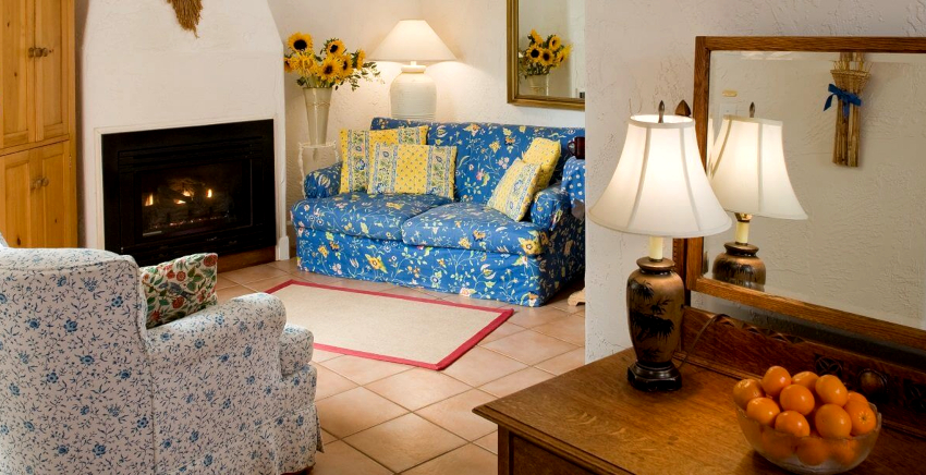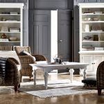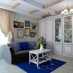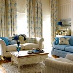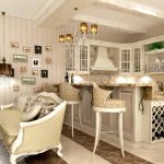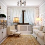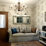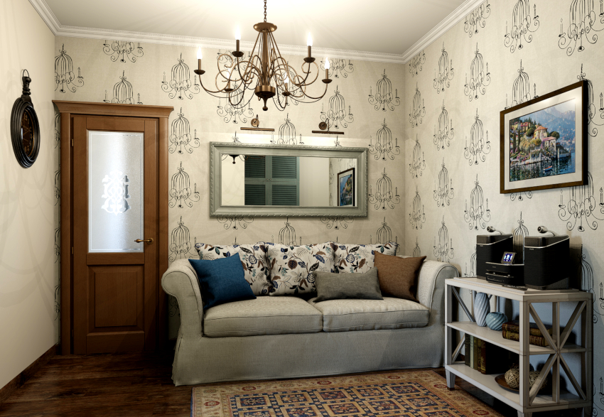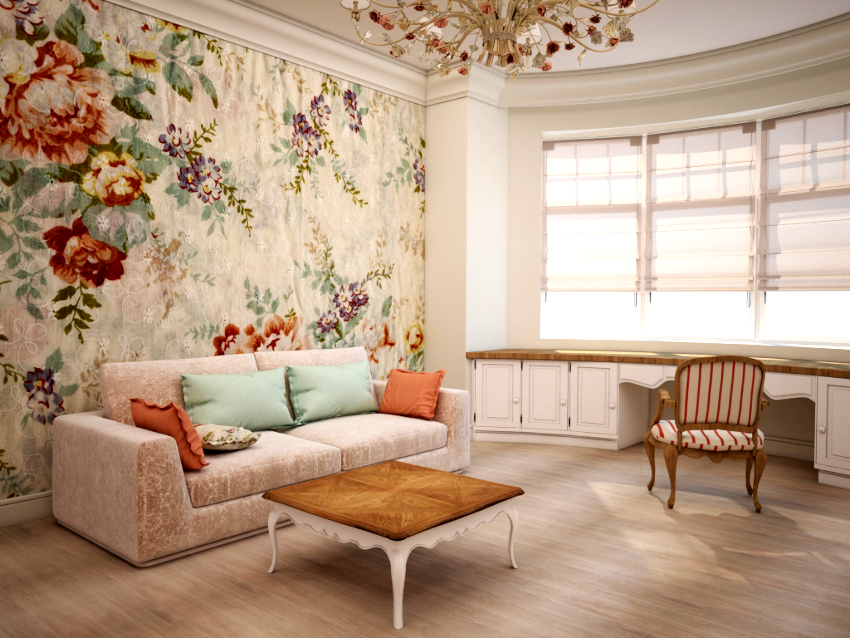 Sofas and armchairs are selected in such a way that the products do not attract attention. Furniture with solid wood sides are welcome. Soft upholstery should be plain, matching the color of the wall decoration, or contain a small floral pattern. In a spacious room, you should install a painted mezzanine, a chest of drawers and a coffee table. Stylish multifunctional modular furniture will ideally fit into a small room.