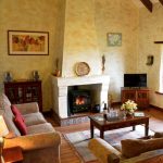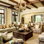 A rustic living room should be filled with natural light, which is achieved through the use of light transparent tulles on the large windows. For artificial lighting, a massive chandelier is installed, located in the central part of the ceiling. It should have a metal frame and a large number of flower-shaped crystal shades. The seating area can be complemented by table candlesticks. Possible lighting options are shown in the photo of the hall design in the house.